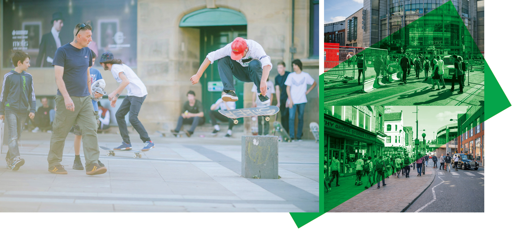 Moving onto the next spot, the streets flooded with wood and wheels was one of the highlights of the day; simply pushing around the city en masse. Props to every skateboarder (which was basically all of them) that was polite enough to dodge the public and apologise for any near collisions. However this didn’t stop some gobshite uni student mouthing off at me – ‘yes love, course I’ll tell all two hundred of these people to watch where we’re going, maybe don’t in jump in front of the guy tanking it down the street away from everyone else and I won’t have to. Safe.’