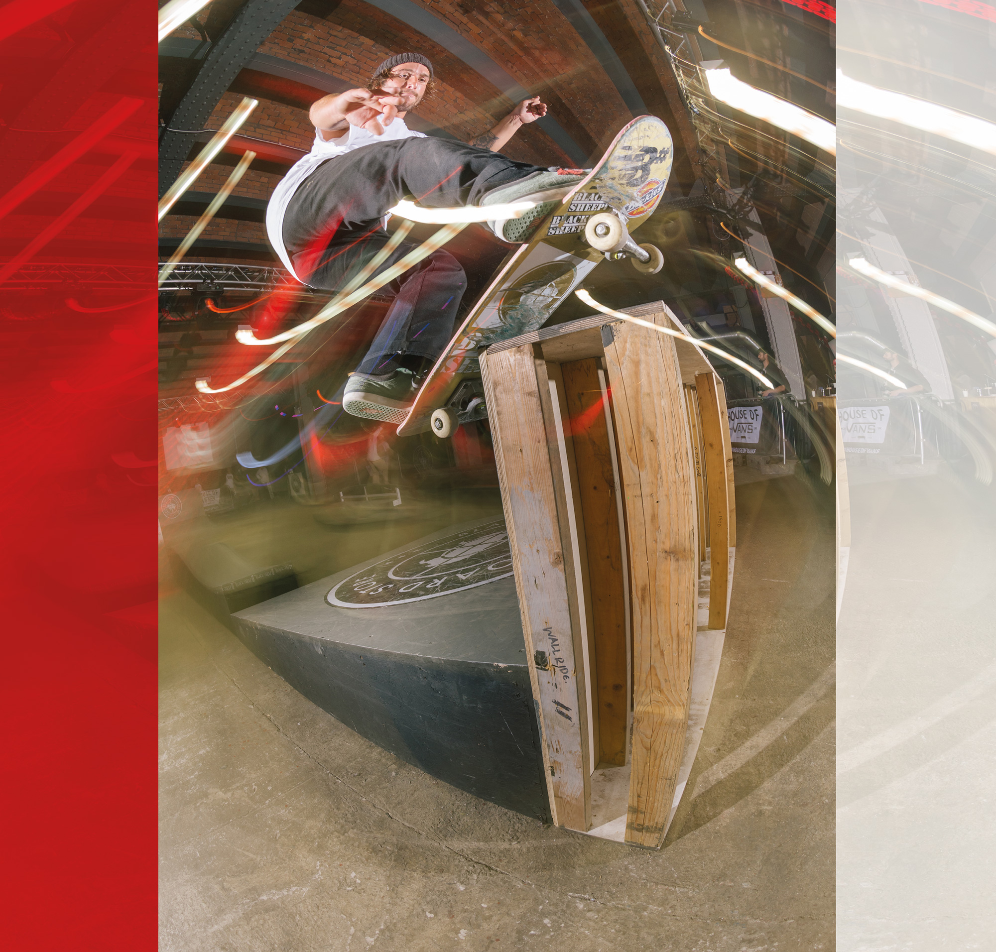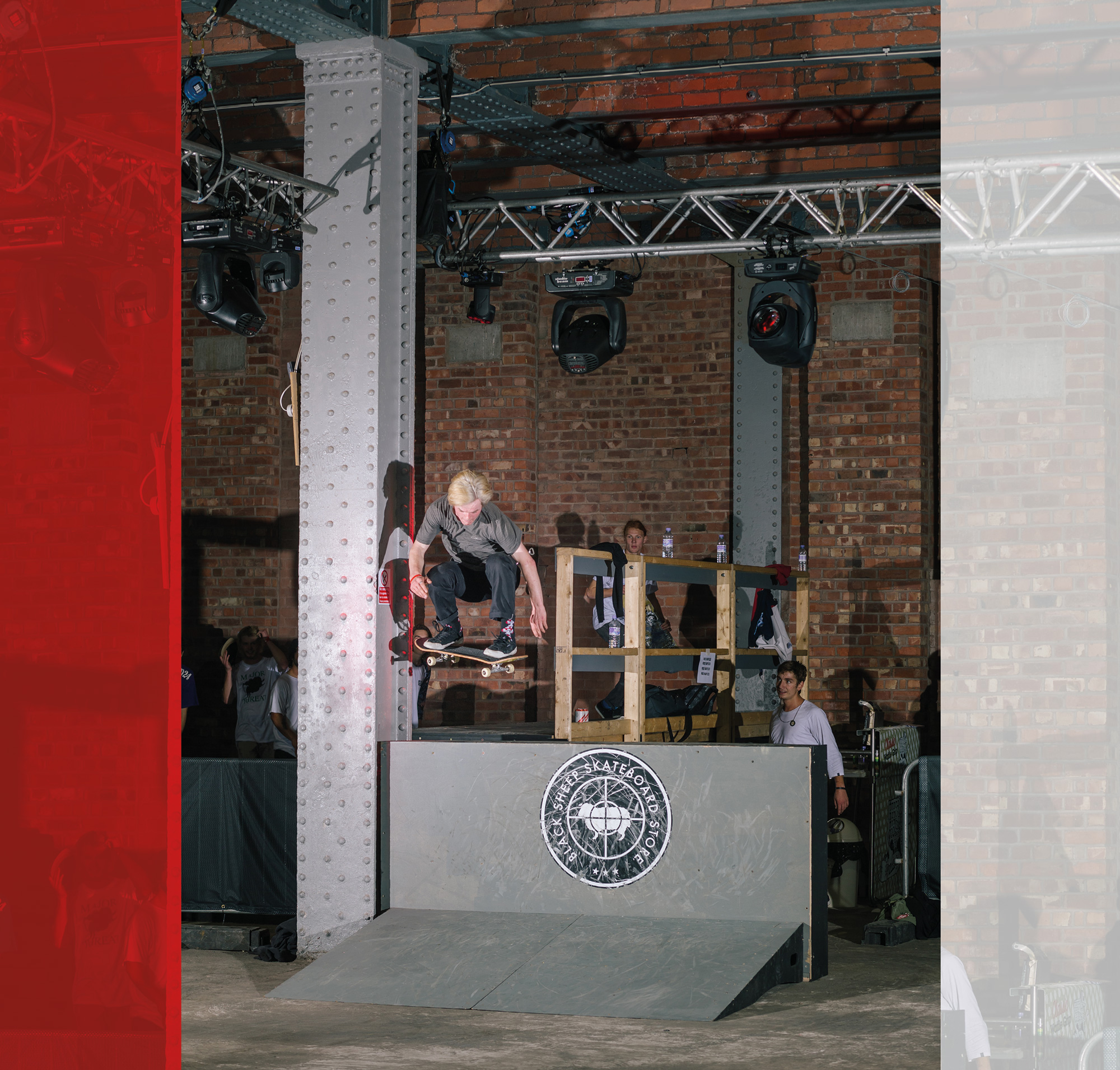 Eddie Belvedere locked eyes on a hap hazard gap, kicking off a session which saw people narrowly throwing themselves off the mini and into the street area. Half opted to go Eddie’s route – into a small bank at the base of a wall – with others going over the barrier to the flat. Rooney took flight, 180ing over into the small bank, while fellow golden haired terror Jordan Sharkey clung to a (hands down, but still first go) tre flip to flat. Jiri Bulin stomped a bolts kickflip with Jake Potts riding away from an impossible not long after. As Stu’s calls for last attempts came, fittingly ending it as he’d sparked off this chaos, Eddie leapt from the mini ramp deck into tail bash on the bank to wall.