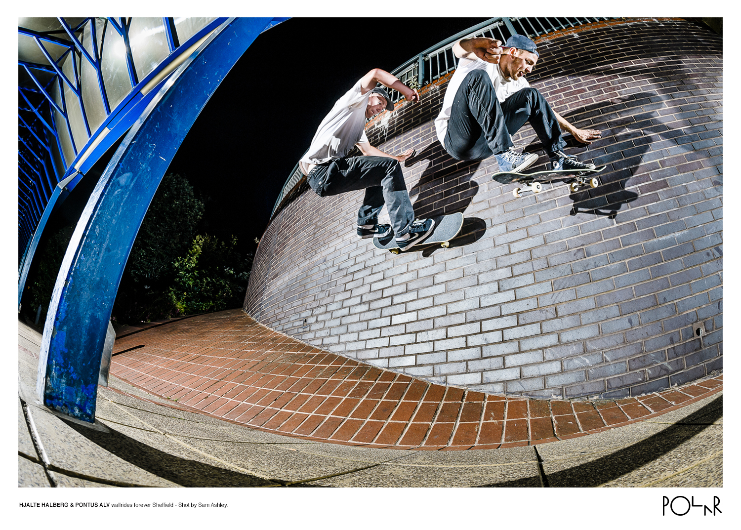 Though not invested in the competitive aspects of skateboarding, Polar has cleaned up at BESA (Bright European Skateboard Awards) over the last three years taking the ‘Brand of the Year’ award each year running, along with Alv earning ‘Videographer of the Year’ in 2013 for The Polar Skate Co. Promo and ‘Clip of the Year’ in 2014 for No Complies & Wallrides + Shuv Its. The brand also has a solid reputation when it comes to collaborations, working with Carharrt, who Alv and Jerome Campbell also ride for, along with three unique suede Chuck Taylor All Stars colourways in partnership with Converse Cons for late 2014. The company also seems to be fairly fond of England, visiting in 2013 and spending most of the their trip in the North, the Polar guys teamed up with the Palace Skateboards crew and managed to fit in a demo at Hyde Park, Leeds before heading home with both Hjatle Halberg and Alv gracing the cover of Sidewalk Magazine the following month. The team returned for the ‘Surf & Turf’ tour the following summer which focused around south areas of the country.