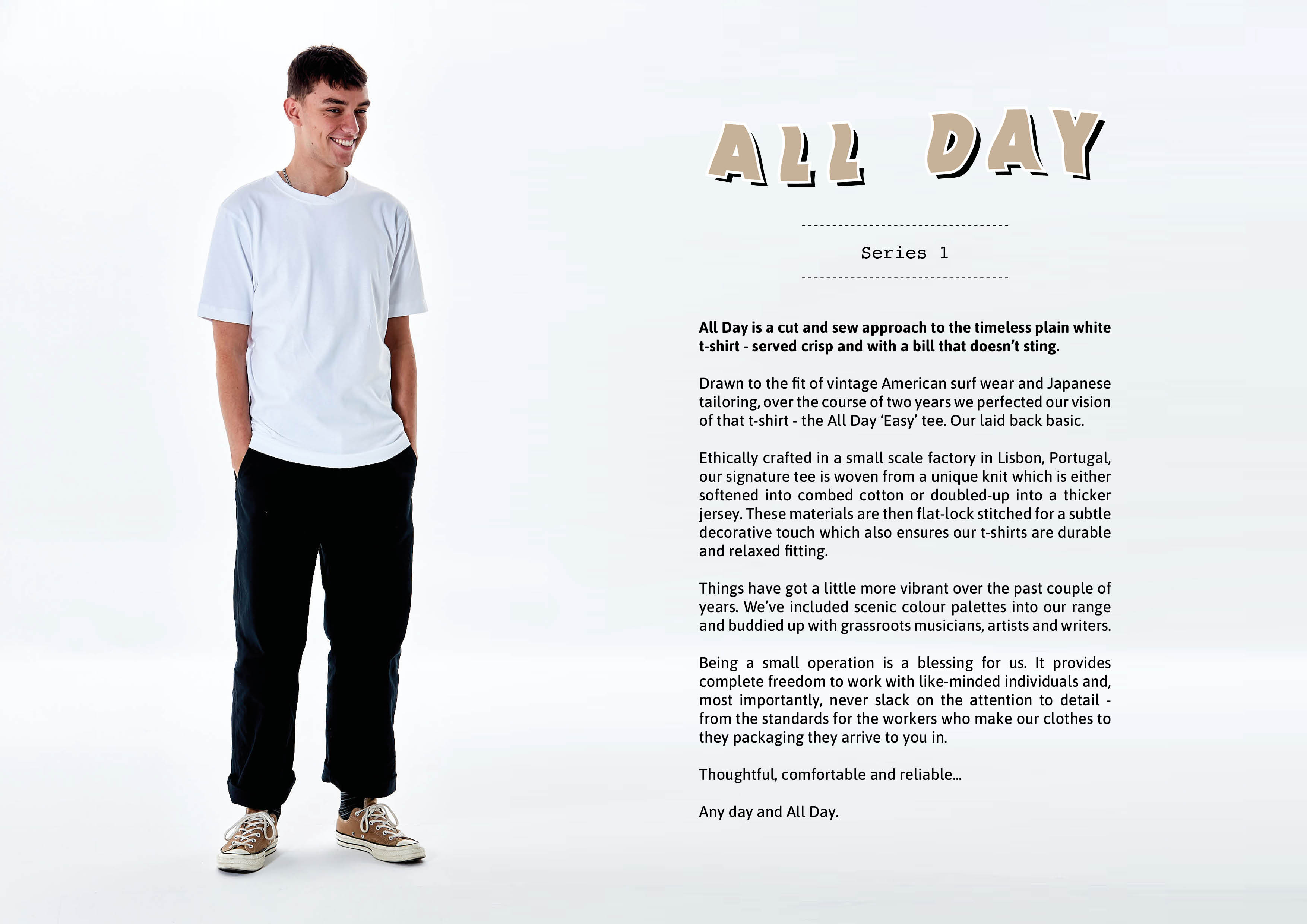 Copywriting and catalogue design for All Day Garb – a small scale clothing brand with a focus on ethical production.