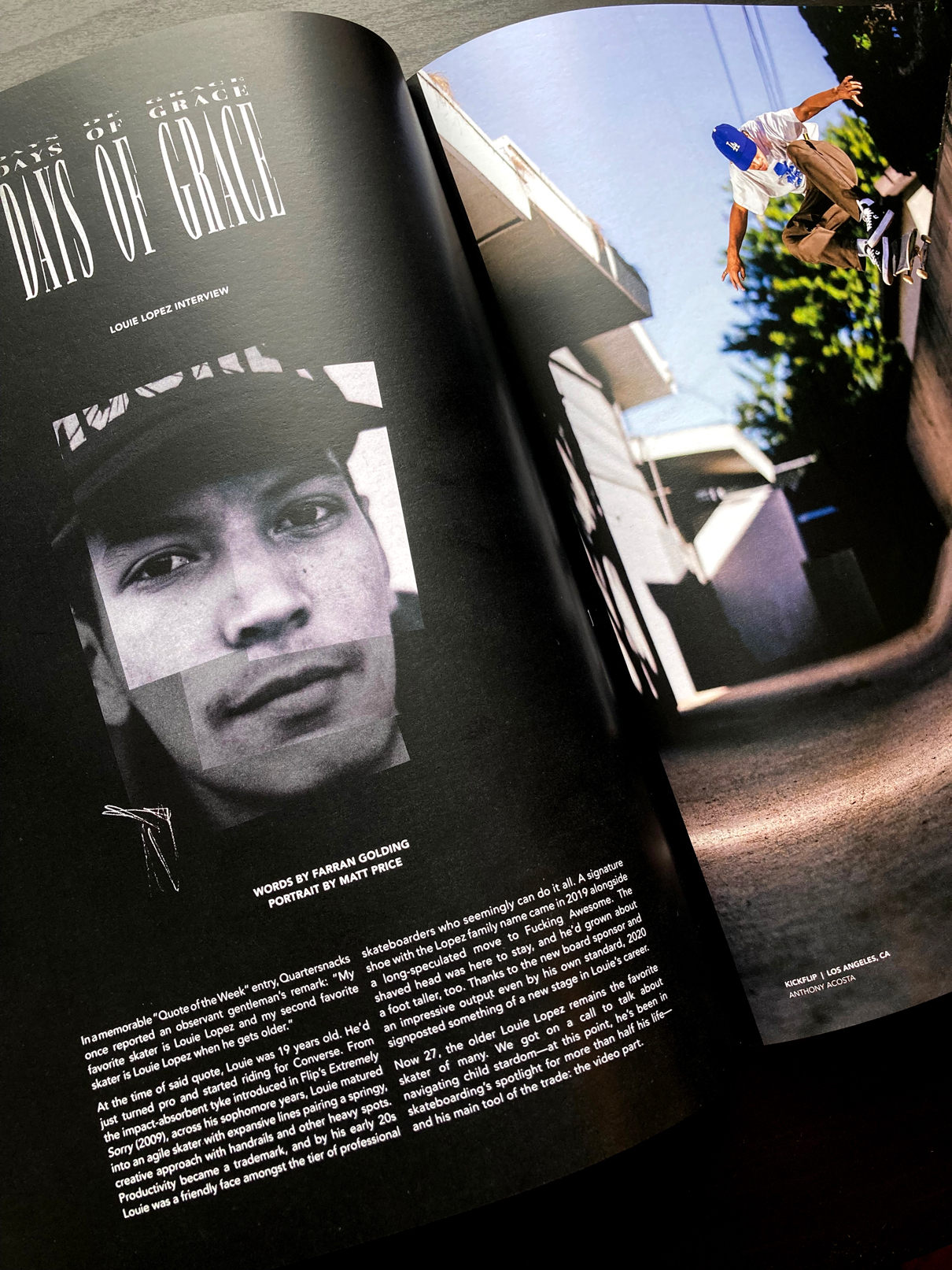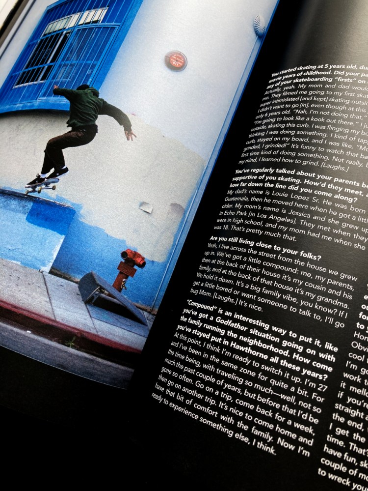A feature interview with professional skateboarder Louie Lopez, and accompanying web content, production for the debut issue of Closer Skateboarding. Available to read online in full.
